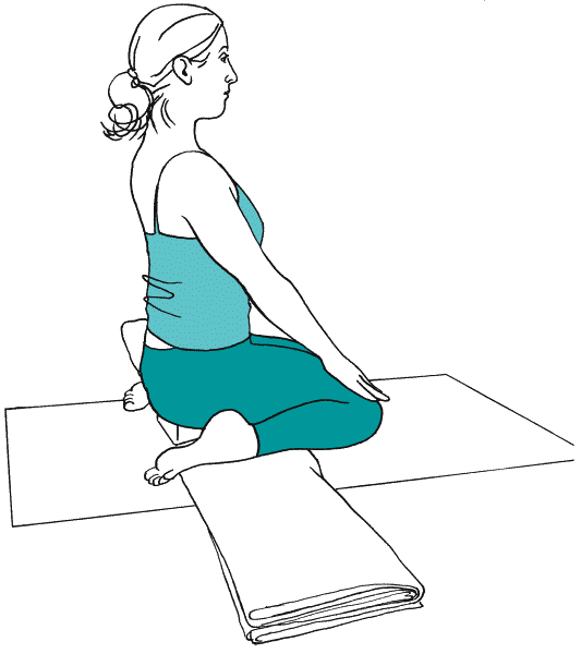 Иногда дискомфорт возникает не в коленях, а в лодыжках. Чтобы уменьшить давление на подъемы стоп и голеностопные суставы, поместите под каждую лодыжку сложенное одеяло или сядьте на стопку из двух-трех одеял так, чтобы пальцы ног свободно свисали к полу (рисунок 12Б).
