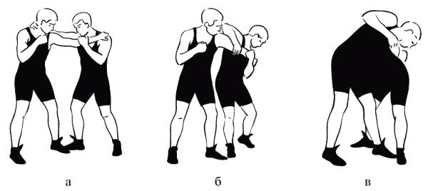 Сочетание взаимной стойки и захвата создают благоприятные условия для проведения того или иного броска. Ниже приводятся алгоритмы стартовых положений для бросков проворотом (рис. 1.10, рис. 1.11).