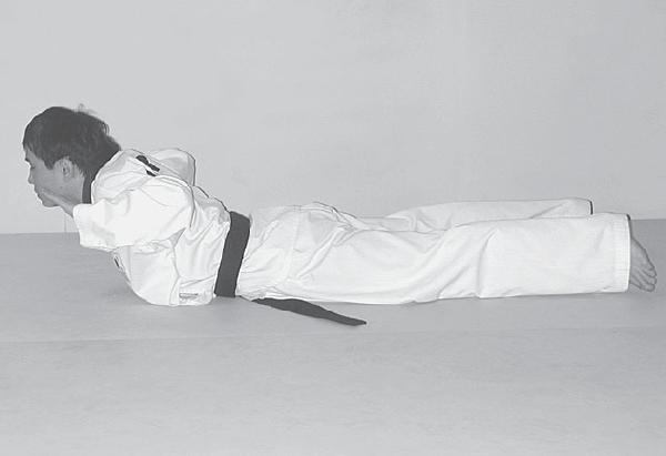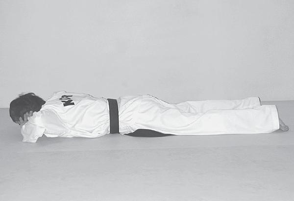 Техника выполнения: примите исходное положение – лежа на животе, руки согнуты в локтях и расположены на затылке, ноги вместе.