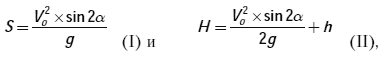 Дальность и высота траектории полета ОЦМТ спортсмена детерминированы скоростью вылета (Vо), углом вылета (?) и высотой ОЦМТ в исходном положении, а спортивный результат – еще и техникой приземления в прыжках на дальность, техникой перехода через планку в прыжках в высоту и с шестом. Дальность (S) и высоту (H) траектории полета ОЦМТ можно приблизительно рассчитать по следующим формулам: