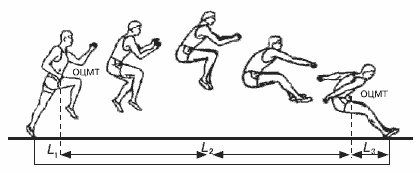 Рис. 6. Прыжок в длину способом «согнув ноги»: L1, L2, L3 – составляющие длины прыжка