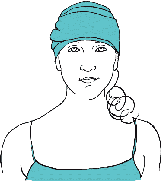Вариация с повязкой на голову. Эластичная повязка поддерживает голову, уменьшает головную боль напряжения и способствует большему расслаблению (рисунок 22В).