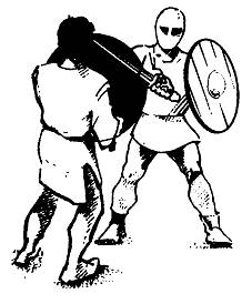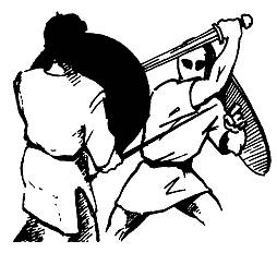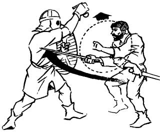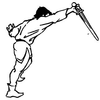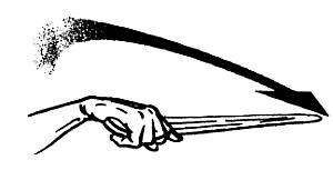 Размашистый удар, выполняемый из положения «отдых» (рука с мечом опущена и не вызывает у соперника опасений). Наносится локтевой гранью с максимальным разворотом локтя верх. Основную силу удару придает мощное движение корпусом влево. Рука лишь подправляет центробежное движение клинка. Достаточно сложное действие, имеющее несколько специфических элементов, которые сложно изложить в формате книги.