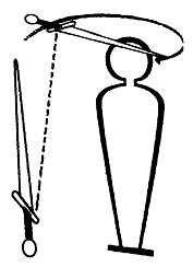 Острие меча в конце удара при классическом исполнении останавливается чуть ниже рукояти.
