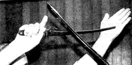 — вынимание меча вперед, стоя на одном колене;