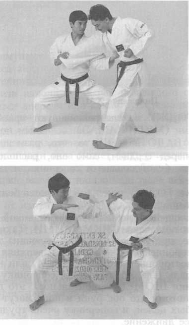 В случае исполнения блоков вы никогда не должны ни переблокировать, ни недоблокировать. Воздействие и диапазон (т. е. расстояние перекрытия) должны быть как раз достаточны или “столько, сколько необходимо”. Если ваш блок не перекрывает довольно большую область тела, т. е. недоблокирован, то атака вашего соперника может пройти сквозь вашу защиту. С другой стороны, если вы блокируете большую область, чем это необходимо, т. е. переблокируете, то в конце блокирования вы будете незащищены. Главное правило состоит в том, что ваш блок должен остановиться у наружного края вашего тела.