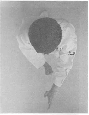 В случае прямой техники вы не должны делать никакого предварительного движения. Например: если вы находитесь в базовом положении КУМИТЭ-КАМАЭ и хотите произвести ГЯКУ-ЗУКИ (реверсивный удар рукой), то вы не должны оттягивать кулак перед ударом. Если вы сделаете это, на удар уйдет слишком много времени; к тому же, ваш соперник узнает ваш замысел (это известно как “телеграфирование”). Это относится не только к кулаку. Следует избегать любых других предварительных движений, таких, как оттягивание бедра, наклоны вперед и назад, вращение тела и т. п., которые все являются ‘телеграфирующими” движениями. Другая причина, из-за которой вы не должны, например, оттягивать назад кулак, заключается в том, что при этом вы делаете незащищенным солнечное сплетение. Ситуация станет еще хуже, если вы сделаете “телеграфирующее” движение поднятием плеча, расслабляя грудную клетку. Этим вы создадите свою “слабость” так же, как и “незащищенность”.