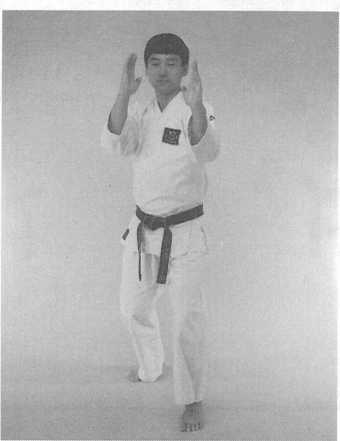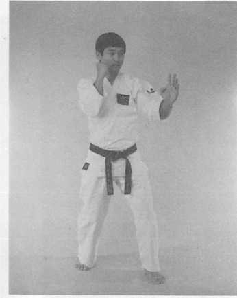 Еще один момент, о котором я хотел бы упомянуть, касается удара УРА-УЧИ. Я встречал довольно много людей, трактующих эту технику как косвенную с отчетливым дополнительным движением. Но УРА-УЧИ должен быть исполнен подобно прямой технике. Я покажу два примера этой техники, взятых из Ката. Первый пример из НАЙХАНЧИН ШОДАН.