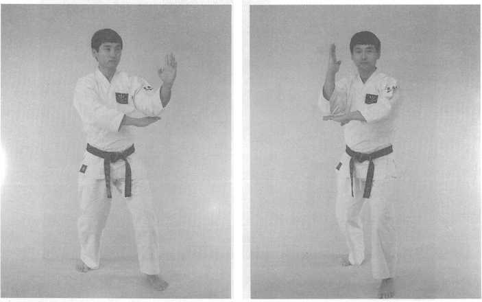В результате, как боевые положения лучше всего использовать и ХАНМИ, и ШОМЭН соответственно ситуации и осуществляемой тактике. Но на тренировках, когда нет свободного спарринга или соревнования, лучше использовать положение ШОМЭН как можно чаще для того, чтобы научиться максимальному использованию массы тела в сочетании с эффективными перемещениями.