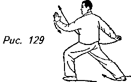 кромки радуги”. Одновременно с этим переносите левую руку вперед и вверх до уровня плеч, держа кисти внутренней стороной от себя. Взгляд по-прежнему обращен на левую ладонь (рис. 129).
