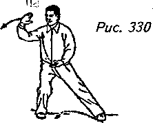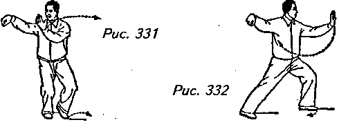 не отрывая кончиков пальцев ее от земли. Одновременно с этим пусть ваша правая рука передвинется вперед к правой верхней части корпуса (согните запястье, собрав все пальцы к большому так, чтобы ладонь приобрела форму клюва). Левую руку опустите вниз, чтобы она прошла поперек живота вправо, а затем вверх и (установилась бы напротив правого плеча. Кисть внутренней стороной направьте к себе. Взгляд по-прежнему обращен на левую руку (рис. 330, 331).