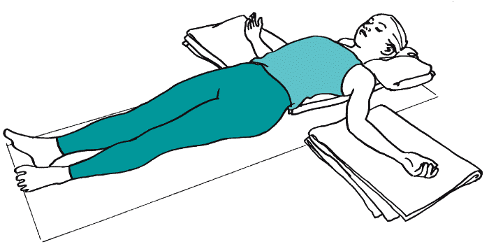 Чтобы закончить практику, вы тащите из-под себя болстер или одеяло и несколько минут полежите в шавасане на ровной опоре (рисунок 33Б). Если вы переходите к дыханию уджайи, оставайтесь в шавасане на ровной опоре до конца практики.
