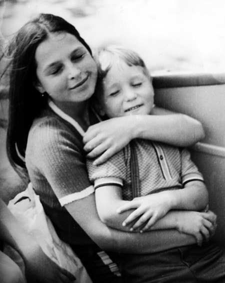 Маленький Антон Рагулин со старшей сестрой Наташей. Прогулка на катере в Крыму. 1975 год