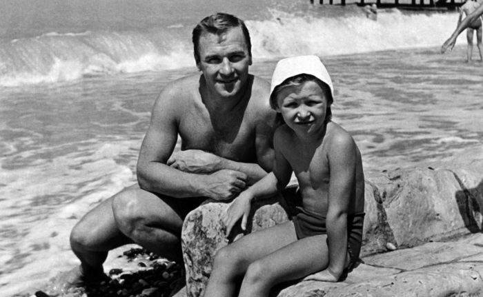 Легендарный форвард ЦСКА и сборной СССР Константин Локтев с дочкой Ирой на отдыхе в Эшерах. Середина 60-х