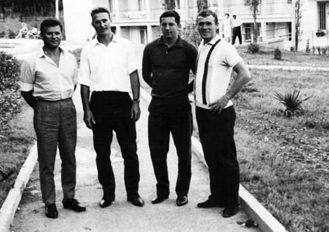 С друзьями по клубу и национальной сборной – Борисом Михайловым (крайний слева) и Владимиром Петровым. Как молоды мы были…