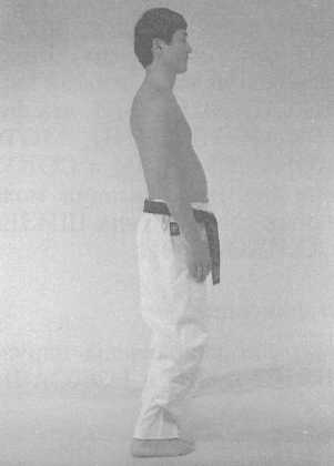 Начните с положения ног в НАИХАНЧИН-ДАЧИ. Ширина стойки равна голени плюс кулак. Верхняя часть тела должна быть вертикальна, а колени согнуты.