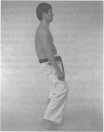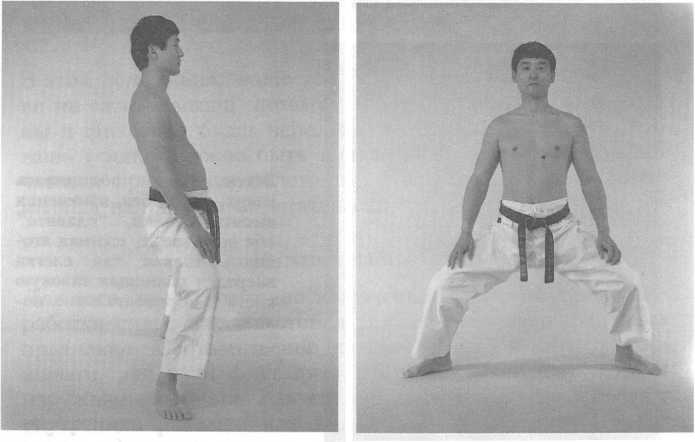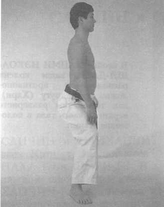 В этом положении все мышцы ног напряжены, но особенно мышцы ягодиц (ягодично-седалищные) и заднебедренные (подколенные сухожилия). В ногах должно быть ощущение цельности, а ощущения стоп аналогичны зарытым в землю. Это положение должно также вызывать напряжение в нижней полости живота, увеличивающее брюшное давление. Вы должны быть внимательны в том, чтобы не сдавливать желудок, что, как я вижу, делают многие, “сдавливая” ноги вверх. Вместо этого вы должны выдвинуть нижнюю полость живота наружу и расширить ее. Кроме НАИХАНЧИН-ДАЧИ, эта фиксация используется в стойках САНЧИН-ДАЧИ, МОТО - ДАЧИ, ЗЕНКУТСУ-ДАЧИ, КОКУТСУ-ДАЧИ и СОКУТСУ-ДАЧИ. В меньшей степени эта же фиксация может быть использована в более прямых стойках типа ШИЗЕН-ТАИ (ХАЧИДЖИ-ДАЧИ) и ХЕЙКО-ДАЧИ.