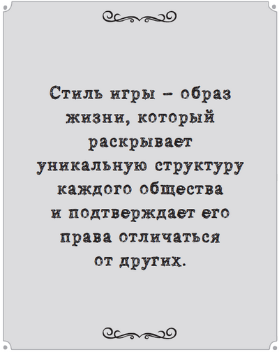 «Я играю, поэтому я существую, – сказал уругвайский писатель Эдуардо Галеано в своем трактате Soccer in Sun and Shadow («Футбол на солнце и в тени»). – Стиль игры – образ жизни, который раскрывает уникальную структуру каждого общества и подтверждает его права отличаться от других. Скажите мне, как вы играете, и я скажу, кто вы. В течение многих лет в футбол играли по-разному, он выражал индивидуальность каждого народа, и сохранение этого многообразия сегодня необходимо больше, чем когда бы то ни было прежде»11.