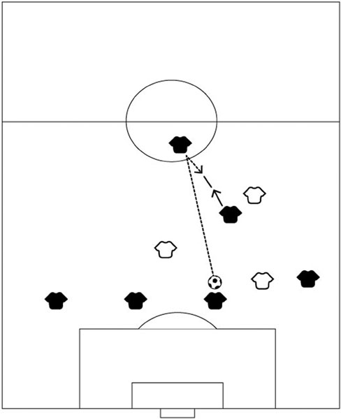 Это обычное явление для команд, использующих полузащитников двух уровней – атакующего и оборонительного плана. Когда мяч у защитника, опорный полузащитник чаще всего находится ближе, и отдать ему мяч проще, поэтому часто мы так и поступаем. Но если мы посмотрим на пятнадцать метров дальше, то, возможно, обнаружим свободного полузащитника атакующего плана. Если мы отдадим мяч ему, опорный полузащитник станет вариантом для ответной передачи.
