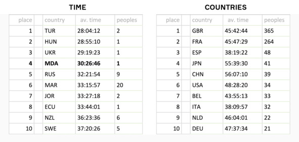 Молдова в командном зачёте заняла четвёртое место среди 48 стран.
