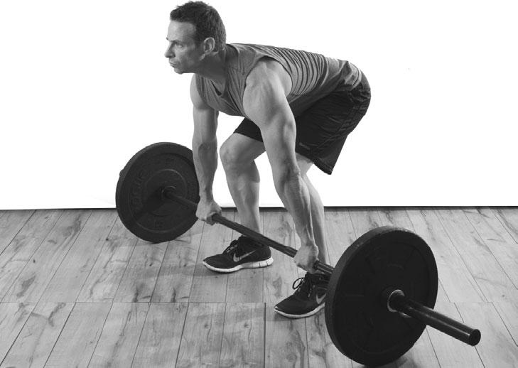 2. Подтяните штангу к поясу или к нижней части корпуса преимущественно за счет мышц верхней части спины (а не рук). Чтобы больше задействовать мышцы спины, сосредоточьтесь на том, чтобы как можно ближе свести лопатки. Конечно, вам придется использовать и руки, но задача в том, чтобы делать это минимально.