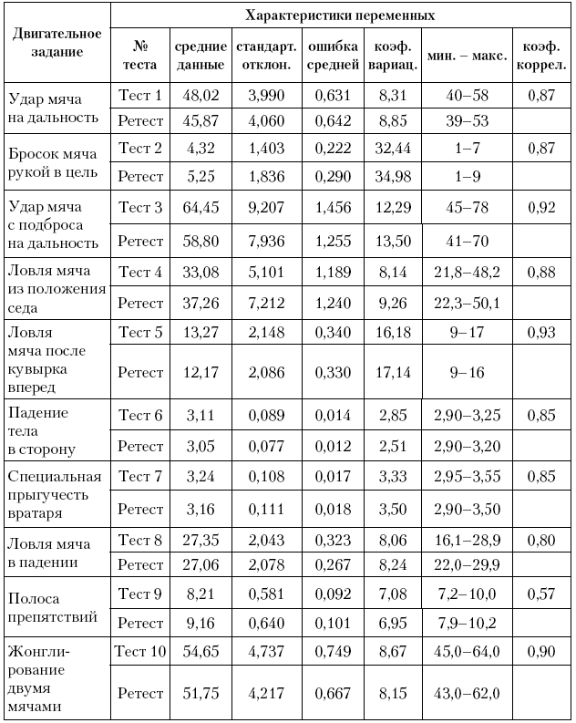 Так как исследуемые вратари были из разных спортивных клубов и городов Польши, возникали трудности при составлении классификационных листов экспертов как критерия оценки информативности отдельных проб и расчета их коэффициента детерминации.