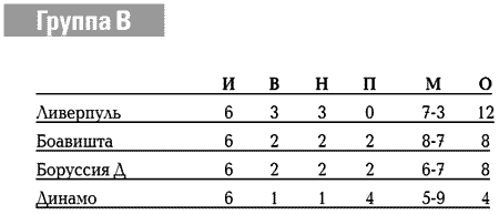 Победа киевлян над «Боавиштой» в последнем туре (1:0, Мелащенко) подарила Дортмунду шанс на второе место, но немцы бездарно его сплавили, проиграв в гостях «Ливерпулю» и уступив «Боавиште» по разнице мячей.