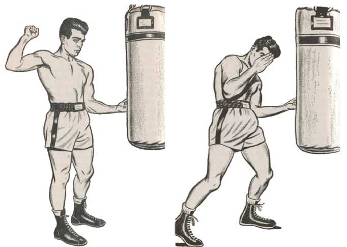 Это подводящие упражнения к нанесению апперкота. Перед тем, как начать вкладывать в удары взрывчатку, эти движения должны быть отработаны до автоматизма. Сама же техника апперкота на первый взгляд покажется нелепой и странной. Ну, что делать, нелепой - так нелепой.