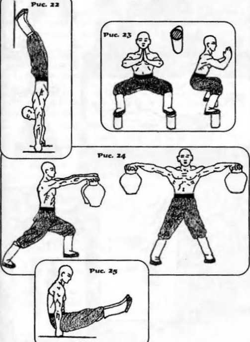 Упражнения статического силового комплекса воздействуют на медленные мышечные волокна. Упражняясь данным способом, шаолиньские монахи, не выделяясь внешне, приобретают большую физическую силу.