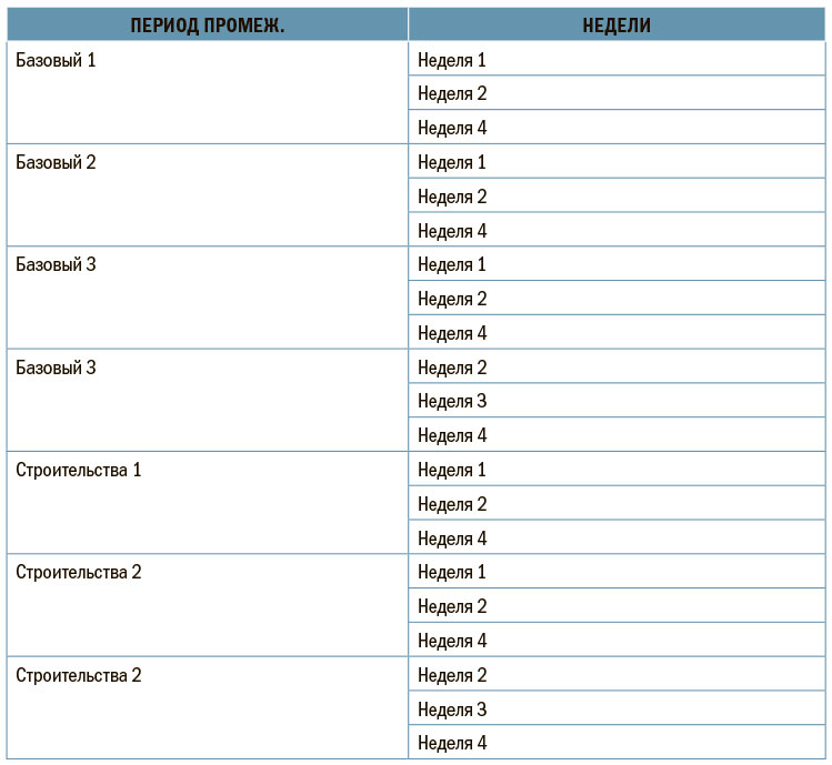 Пример промежуточных базовых периодов и периодов строительства для медленно восстанавливающихся спортсменов