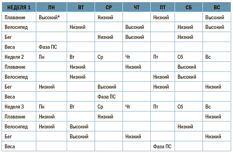 * Высокий и низкий – обозначения уровней длительности или интенсивности тренировок.
