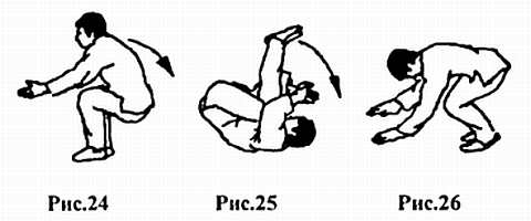 2. Прижмите подбородок к груди и выполните кувырок назад (рис. 25).