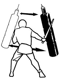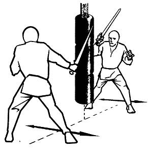 Это позволяет поставить атаку по касательной и выполнение ударов в маневре (боец, двигаясь вокруг балды, наносит удары и меняет направление движения). Таким образом приобретается легкость и раскованность действий.