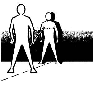 2. В ситуации, когда вы заметили приближение противника краем глаза, то есть увидели позади и сбоку только его ноги.