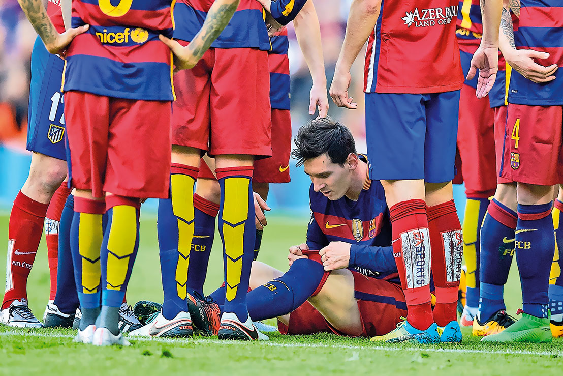 Теперь для Месси аналогично важны не только встречи с «Реалом», но и матчи с мадридским «Атлетико». На фото – Лео поправляет гетры в перерыве противостояния 30 января 2016 года.