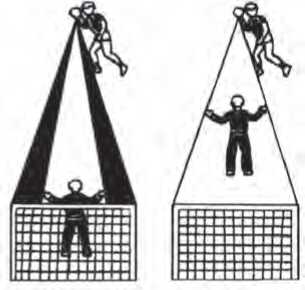 Если высокий мяч летит в квадрат 1 или 2, вратарь задерживает его одной рукой в прыжке; если в квадрат 3 – двумя руками.