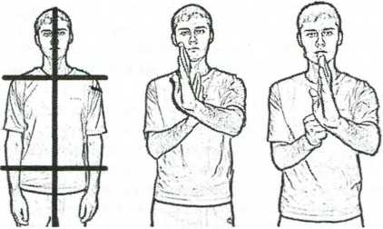 Для защиты центральной линии боец вин чунь занимает положения рук на центральной линии. Также по этой причине одними из основных видов ударов являются удары вдоль центральной линии (рис. 2.2). Это позволяет одновременно контролировать собственную центральную линию и атаковать основные зоны на центральной зоне противника.