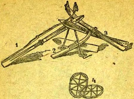 Лыжи типа «муртома» (1), охотничьи лыжи (2), лыжи типа «телемарк» (3) и первобытные лыжи — труги (4).