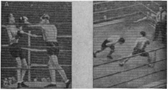 Перенос веса тела на правую ноту, а следовательно, и перевод этим самым вращения в правый тазобедренный сустав высвобождает от веса тела левую ноту и дает возможность боксеру вышагивать ею вперед в момент удара правой.