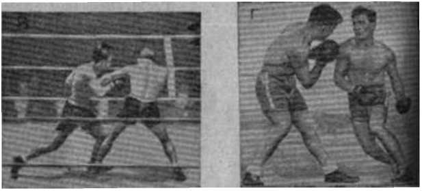Рис. 92. Крюк левой под шаг правой ногой в исполнении профессионалов (А. Б, В, Г)