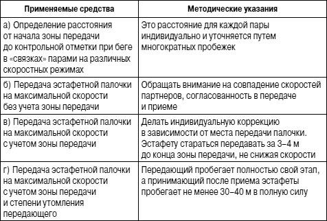 Слаженность передачи палочки на максимальной скорости играет решающую роль в достижении высоких спортивных результатов в эстафетном беге. Поэтому при целенаправленной подготовке спринтеров в этой дисциплине легкой атлетики важнейшее место отводится совершенствованию технических приемов в ограниченной зоне передачи, обеспечивающих надежность выступлений.