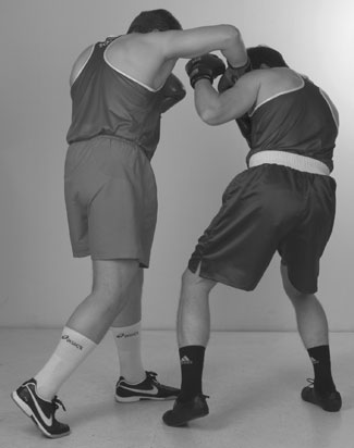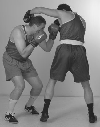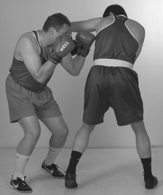 1. Двигаясь в стойке, защищаемся шагом назад, подставкой и нырком, но бить будем только после нырка.