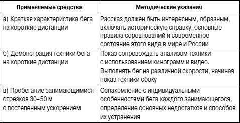 Задача 1. Создать у занимающихся правильное представление о технике бега на короткие дистанции и предпосылки для ее успешного овладения