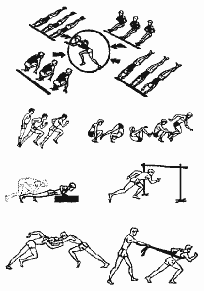 Рис. 17. Упражнения, способствующие овладению техникой низкого старта