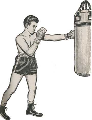 Чтобы было понятнее, проведем маленький эксперимент. Займи боевую позицию и нанеси по мешку левый прямой с поворотом плеч. Сразу после этого нанеси мощнейший правый прямой, но вместо того, чтобы ударить по мешку, в последний момент отдерни кулак к груди.