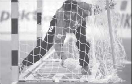 Рис. 114. Быстрые действия вратаря после пропущенного мяча