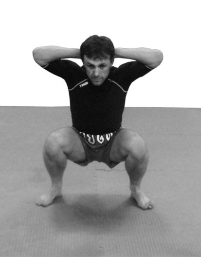 Для любого бойца очень важно умение «взрываться» из состояния расслабления и умение вести длительные по времени поединки. Рукопашникам, в отличие от бодибилдеров, не нужны гипертрофически развитые мышцы, которые выглядят весьма внушительно, но сильно закрепощают тело и способны работать с полным напряжением лишь ограниченное количество времени. Силовые упражнения для рукопашников подбираются так, чтобы упражнения на развитие силы сочетались с развитием общей и специальной выносливости и кардиотренировкой. Именно поэтому бойцы редко работают с большими весами, предпочитая уменьшить вес отягощения, для того чтобы увеличить количество выполняемых повторов. Силовая тренировка, и особенно работа с отягощениями, – это довольно специфичная тема, и заниматься ею нужно под присмотром опытных специалистов. В рамках этой книги мы рассмотрим упражнения на развитие силовой выносливости с весом собственного тела, исполнение которых не требует присутствия тренера и выдающегося начального уровня физической подготовки: