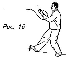 Это упражнение будет часто повторяться в данном комплексе. Оно состоит из четырех основных движений, которые по традиции называют “отражение удара” (рис. 7, 8), “откат назад” (рис. 9, 10, 11), “стискивание” (рис. 12, 13) и “толчок” (рис. 16, 17). А теперь покажем их более детально.