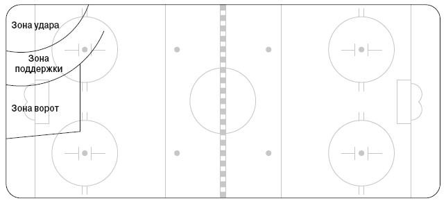 Рисунок 9.4. Зона удара, зона поддержки и зона ворот.
