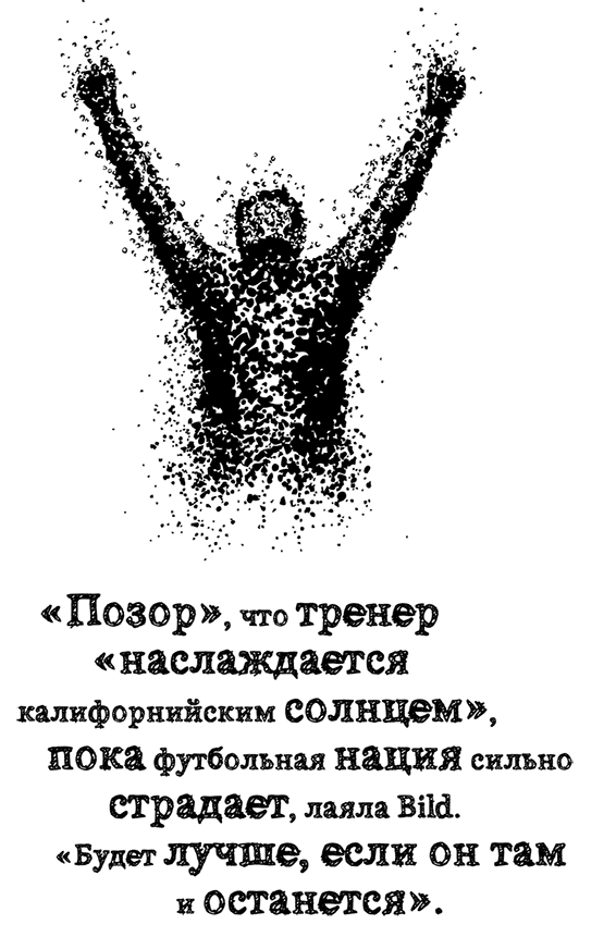 Бирхофф засек признаки излишней самоуверенности. «Все были счастливы, и пара игроков спросили у меня: что дальше, что будет, если мы дойдем до финала? – вспоминает генеральный менеджер сборной. – Теперь вы знаете, почему матч с Ганой вышел таким, каким вышел». Послание Лёва («Если на этом Чемпионате мира ты ослабляешь хватку, ты проиграл. Гана загоняет нас по полю») дошло не до всех, несмотря на относительно свежий негативный опыт команды. В 2008-м и 2010-м лихой старт команды приводил к тому, что 11 лучших игроков DFB неизменно спотыкались и падали наземь во втором матче, проиграв соответственно сборным Хорватии и Сербии. (Поражение 1:2 от команды Славена Билича в Клагенфурте на Евро-2008 стало последней каплей, переполнившей чашу терпения Лёва: он отказался от расстановки 4–4–2, которая стала слишком предсказуемой и уязвимой для соперника, в пользу более гибкой 4–2–3–1.)